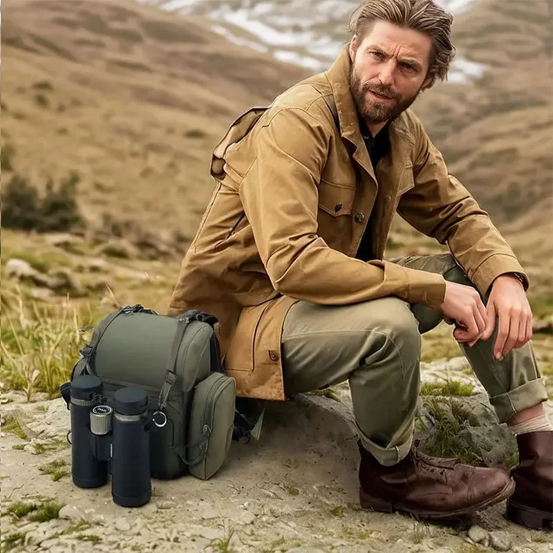 Rain Cover and Wide Cloth: This bino bag comes with a rain cover and a cleaning cloth,helping you travel even on rainy outdoor days and clean lens stains at any time.
